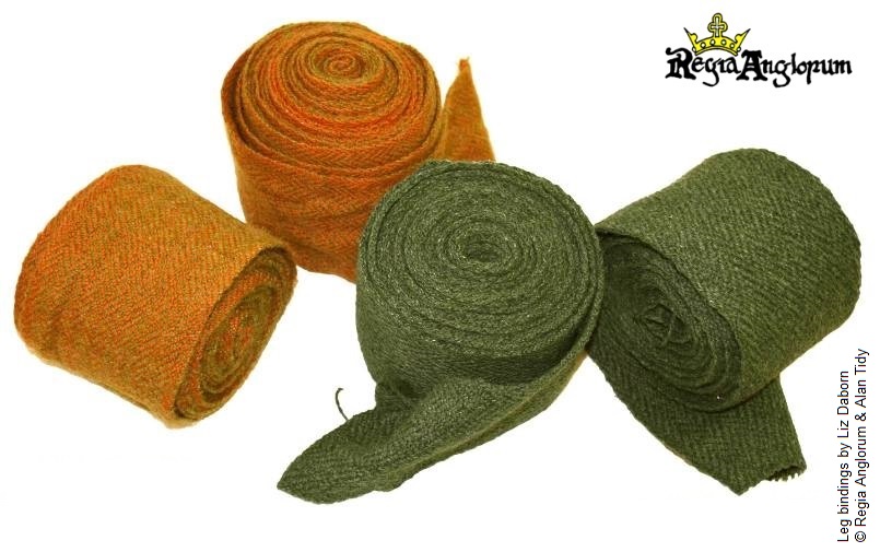 Leg coverings, if worn at all, should be tight to the leg and can be trousers or hose and braies. Leg wraps can also be worn. These are long strips of 10cm wide woollen cloth worn wound about the lower leg from the ankle to the knee.