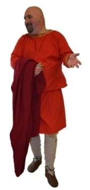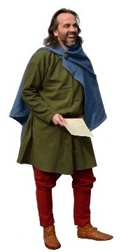 An educated freeman of some wealth as shown by the colours of his clothing. He wears the common short everyday cloak. This look can be worn at any Regia event.