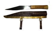 MikeSeax Blades vary in length from between 7'' to 11''. Sheaths are usually decorated in Winchester styles and simple knot work, applied by tooling.