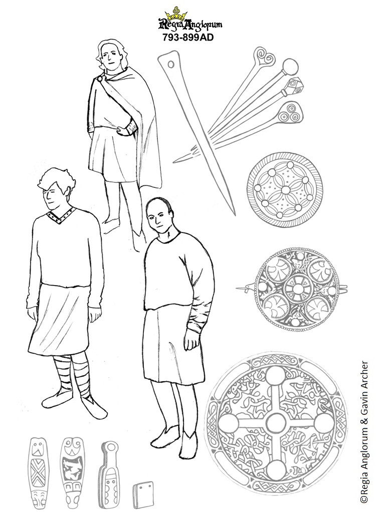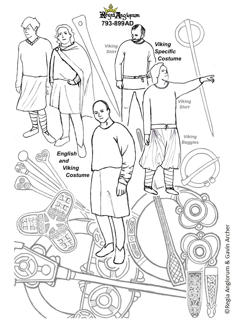 Viking men’s fashion of the 9th century varies little from that of the English. The main item of clothing is the knee length tunic and other than decorative fashion and jewellery it would be hard to tell a Viking from an Englishman. Neck-holes are either round, oval or v-shaped, and can have a keyhole opening. Decoration usually in the form of facings narrow silk strips and tablet weave can be applied to the cuffs and around the neck-hole. Vikings don't seem to have favoured embroidery although embroidered panels were imported from other countries.
